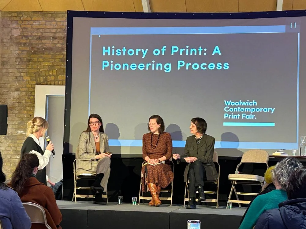 On Saturday, the program included a lecture on The History of Print: A PIONEERING PROCESS. The lecture was presented by Dr Rachel Sloan, an art historian from The Courtauld Institute of Art; Holly EJ Black, a Journalist writing a book about the history of printmaking; and Professor Jo Stockham, the Head of MA Printmaking at the Royal College of Art.